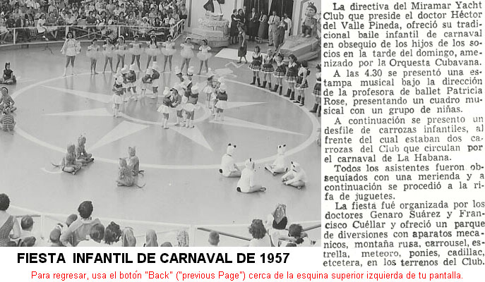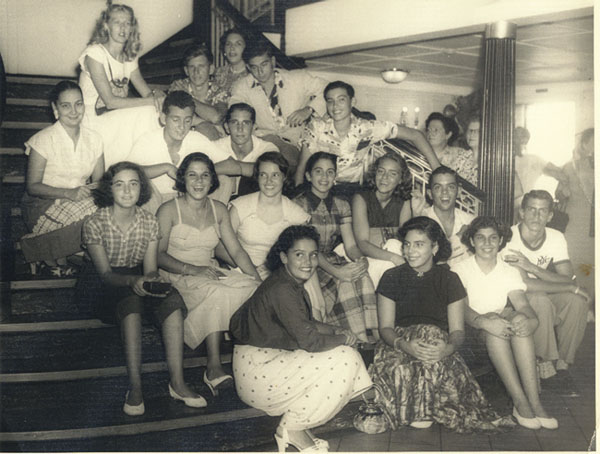 Recordar las actividades del Club es volver a vivir. Aquí lo hacemos con palabras y luego con fotos. Las actividades maritimas son presentadas en la página Náutica, pero ¿quién ha olvidado las regatas de velitas, de remos y de snipes? ¿O los paseitos en bote bajo eso días gloriosos de nuestra Cuba? Los atletas competían contra otros Clubs y organizaciones en una multitud de deportes, y esas actividades se recuerdan en la página de Deportes, pero ¿a quién se le olvida las reñidas competencias de natación o los emocionantes juegos de football? Sin embargo, había otros socios que no hacían nada. Bueno, parecía que no hacían nada, porque no tenían botes ni pertenecían a ningún team de deportes, pero hacían mucho. Sólo hay que mirar el esquema o "sketch" que se presenta en la página del Local para ver todo lo que hacían. Se soleaban y se bañaban en la playa, o nadaban en la piscina. O se iban a bolear a la bolera. O jugaban en las canchas de tennis y squash. O leían en la biblioteca. O jugaban dominó o cartas en el salón de juego de los hombres, o cartas en el salón de juego de las mujeres. O jugaban billar. O de verdad no hacían nada, pues se sentaban a conversar con amigos, ya sea en la sala, el comedor, la terraza o las barras (o en la escalera, como pueden ver en la última de las fotos que se presentan más abajo). En fin, hacían lo que querían, algunas veces nada y algunas veces mucho. Pero la oportunidad existía de divertirse sin parar. Especialmente en las fiestas. ¿Quién no se acuerda de las fiestas de debutantes y las fiestas de 15, la fiestas guajiras, la de los yatistas, las de disfraces y las de fín de año? Y se me olvidó los patinaditos en el skating rink y las fiestas de niños. Había tantas otras fiestas y hay tanto que recordar de estas fiestas -y de las cosas que pasaban- que hemos creado una Página de Fiestas con los detalles. ¿Y las cosas que pasaban en el Club -las anécdotas- cuando no había fiestas? Para presentar los cuentos que nos han hecho -y otros que esperamos- hemos creado otra página para recordar estas cosas, o para enterarnos por primera vez. Esta Página de Anecdotas necesita ampliarse, así que buscamos contribuciones si tienes un cuento del Miramar que sea verídico, interesante y corto, y si estas dispuesto a enviarlo por e-mail. Aviso: las páginas de Fiestas y Anécdotas se pueden ir a ver solamente desde esta página de Actividades. Así que regresa aquí cuando quieras seguir recordando.