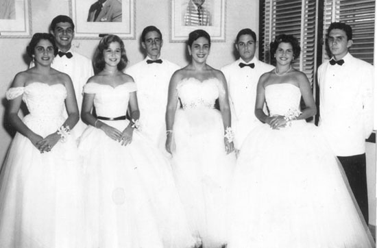 Fiesta de Debutantes, 1955Chiqui Gomez, Victor Vega, Patsy Rose, Raúl (Zeppelín) Cosío, María Luisa Rivero, Rodolfo (Yuyi) García Miro, Rosita Gomez del Rio y Rolando (El Guajiro) Acosta.