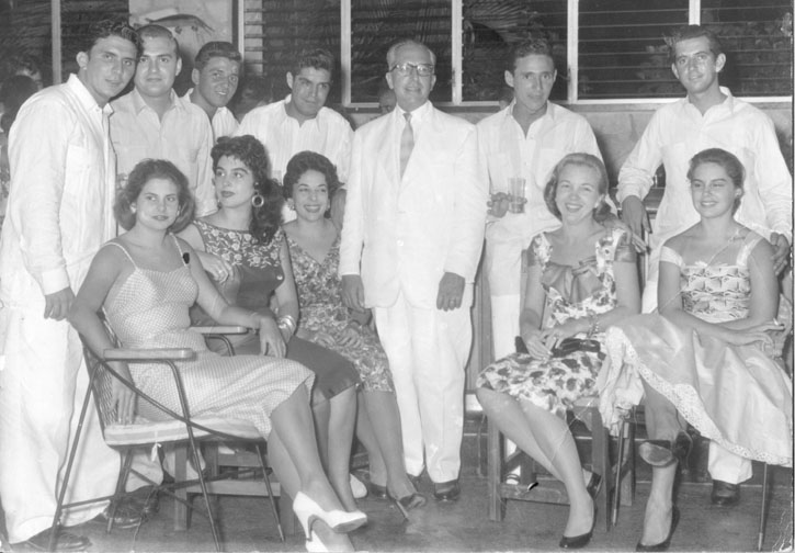 Fiesta Guajira, circa 1951De izquierda a derecha, parados: Rolando (El Guajiro) Acosta, Toñín Llama, ? Junco, Desconocido, Severo Pina, Francisco (Cuco) Cosío y Mario (El Piti) de la Guardia.