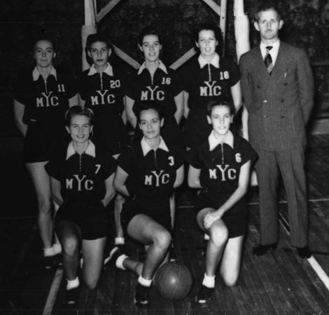 Team Femenino de Basketball, 1937De izquierda a derecha, comenzando por la fila de arriba, aparecen Margaret Chapman Jones, Blanca Brava, Yolanda Martín, Silvia García Navas, el coach Cappy Campuzano, Connie Campbell, Xiomara Martín y Marta Bravo.