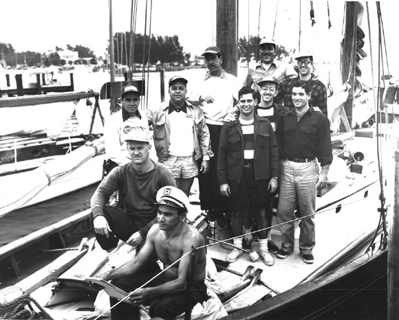 Ganador Regata Habana - San PetersburgoDe izquierda a derecha, detras del marinero, están Tiki Rousseau (sentado), Jorge Mantilla, Mariano Guas Inclán, Santiago García Nava, Manolín Rasco, Clemente Inclán debajo de Gonzalo Meléndez y Toribio Bravo debajo de Alberto Inclán. Foto tirada en San Petersburgo en 1950.