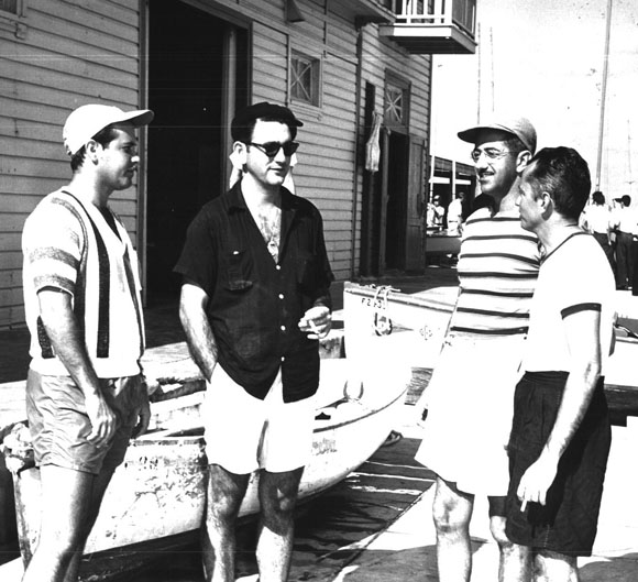 Conversación en Frente de la Casa de Botes Vieja, 1954De izquierda a derecha están Jorge Mantilla, Carlos Sela, Clemente Inclán y Carlos Inclán.